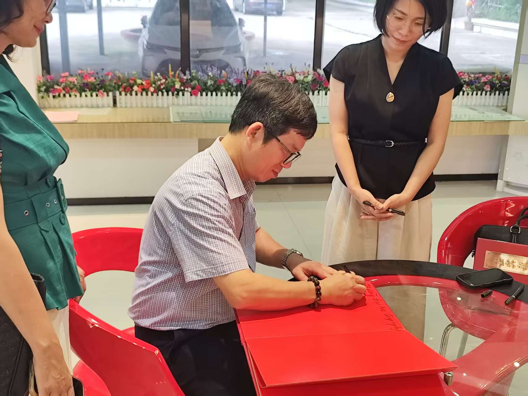 考察期間,黃春俠校長一行在雙喜相關(guān)負(fù)責(zé)人的陪同下,實(shí)地參觀了雙喜學(xué)校國際生的學(xué)習(xí)、實(shí)踐及生活環(huán)境,重點(diǎn)考察了現(xiàn)代化的全新吊掛生產(chǎn)實(shí)訓(xùn)車間,并與在校越南籍學(xué)生進(jìn)行了親切座談。黃校長對雙喜學(xué)校成功的國際生人才培養(yǎng)模式給予了高度評價(jià)和充分認(rèn)可,在參觀學(xué)校校史館時(shí),黃校長還在嘉賓提名簿上提詞。